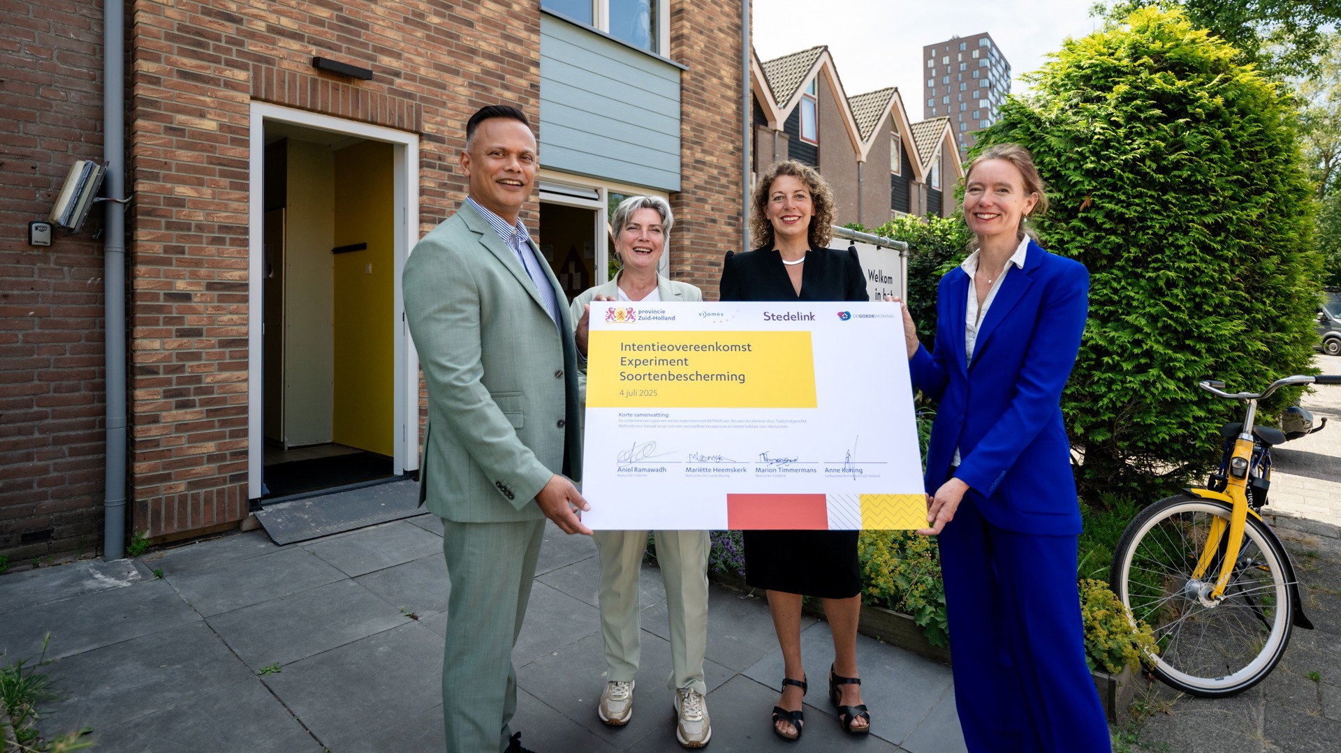 “We vinden de bescherming van dieren en hun leefomgeving ook belangrijk,” vertelt Marion Timmermans van Stedelink. “Maar als je denkt dat het efficiënter en beter kan, dan moet je dat proberen.” Dat is precies waarom Mariëtte Heemskerk haar handtekening namens De Goede Woning zet: “Hiermee helpen we mens, dier en natuur. En met een beetje geluk ook onze portemonnee.”