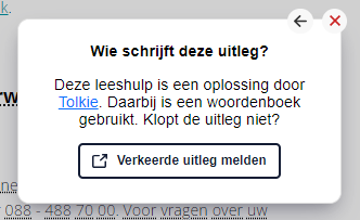 Naast de enorm snelle ontwikkeling van AI, verbetert Tolkie ook door de feedback van de gebruikers. Staat er per ongeluk een foutje in een uitleg of tekst? Meld de verkeerde uitleg, zodat de leeshulp nóg beter wordt.