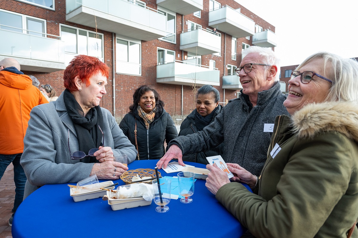 Op 14 maart vierden de bewoners de opening samen met wethouder Gijs van Malsen en Vidomes-bestuurder Daphne Braal. In ontmoetingsruimte De Buitenkamer speelden ze ook samen een spel om kennis met elkaar te maken. Het begin van een gesprek was soms wat lastig, maar gelukkig waren er ook ‘kletskaartjes’ van Vidomes. Op deze kaartjes staan vragen die je aan de ander kunt stellen.