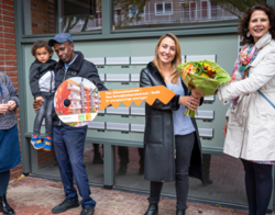 Nieuwe bewoner van één de appartementen: “We woonden 12 jaar in een krappe flat hiertegenover met onze kleine kinderen. We zagen dit woonblok verrijzen en keken er dagelijks jaloers naar. Zouden wij ook ooit zoiets krijgen? En toen ontvingen we een uitnodiging! We hebben net de sleutel gekregen. We kunnen het bijna niet geloven.”